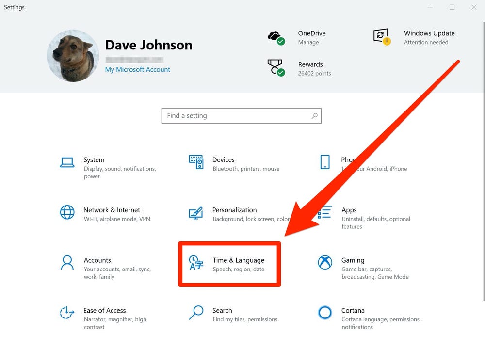 Under the “Region and Language” heading, click on “Change the language.”